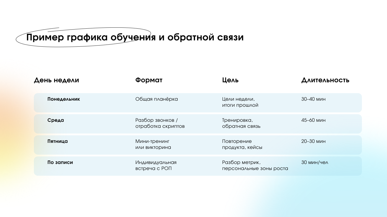 – Связывайте обучение с KPI (например, «хочешь бонус — подтяни выявление потребностей»).