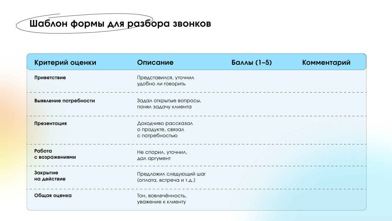– Вовлекайте команду в оценку: пусть менеджеры сами анализируют звонки.
